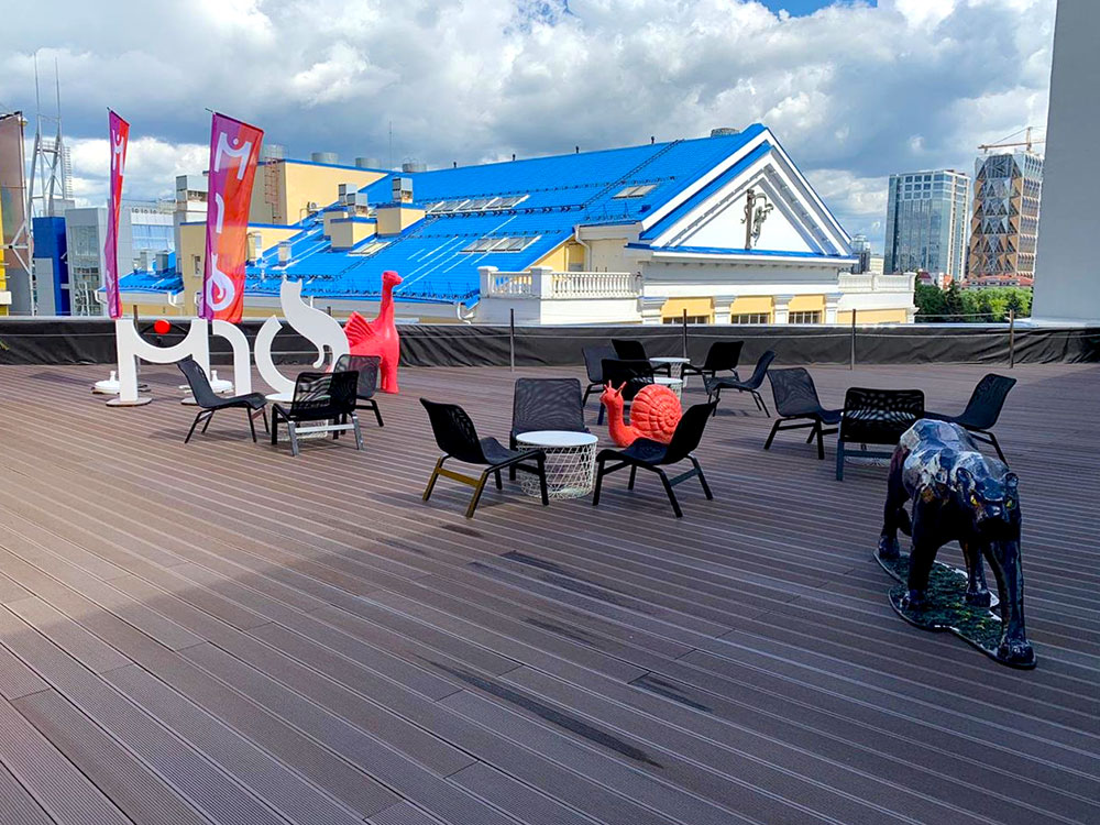 Доска DECKRON разработана специально для жаркого влажного климата, что позволяет сохранять первозданных вид как можно дольше, не разрушаясь от влажного и соленого воздуха. Так-же доска устойчива к выгоранию и выцветанию, не деформируется и устойчива к пониженным температурам. Так-же для реализации проекта были использованы: